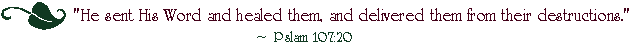 Healing Word Psychotherapy Services, LLC, focuses on the healing that the Lord Jesus Christ desires to do in an individual’s life. For Jesus Himself said, "Apart from me, you can do nothing" (John 15:5). But He has chosen to let us partake in the healing process. As the Apostle Paul said, "But we have this treasure in jars of clay to show that this all-surpassing power is from God and not from us" (2 Corinthians 4:7). Therefore, it is the basis of Healing Word Psychotherapy Services that God is the Almighty Healer. God is the only One who can give life, for God is the Author of Life. His life is given through the speaking of His Word. As the centurion replied to Jesus in Matthew 8:8, "Just speak the Word, and my servant will be healed." Jesus Christ is the Anointed One of Isaiah 61, who came to "preach the good news to the poor, to heal the brokenhearted, to proclaim liberty to the captives, and freedom to the prisoners." Since the Bible tells us that Jesus Christ is "the same yesterday, today, and forever" (Hebrews 13:8), whatever has broken your heart, whatever present troubles you’re struggling with, whatever emotions, beliefs or hurtful memories have held you captive, whatever ungodly spiritual ties have bound you, Jesus can free you from your pain so that you, too, can say with the Apostle Paul, "Forgetting those things which are behind, and reaching toward what is ahead, I press on toward the goal to win the prize for which God has called me heavenward in Christ Jesus" (Philippians 3:13-14). At Healing Word Psychotherapy Services, you’ll find a compassionate, caring and respectful Christian approach which addresses the entire spectrum of mental health issues, from depression to eating disorders to schizophrenia. Healing Word looks at every aspect of the individual: emotional, psychological, social, physical (non-medical), with a special emphasis on the spiritual. Healing Word holds a sensitively integrated perspective on mental health issues and disorders, drawing from spiritual truths found in scripture as well as sound psychological principles. Healing Word values each individual as a unique person of worth - created in Christ’s image - not as a psychiatric diagnosis or label. Along with conventional treatment interventions such as cognitive-behavioral principles, Healing Word also provides specialized approaches used in therapy with clients, including but definitely not limited to: healing prayer; a spiritual experience inventory; and a focus on a person’s identity, value and worth in Christ and how to live this out in daily life. (For a more comprehensive listing of Healing Word’s specialty areas, please see Issues Addressed.) Healing Word Psychotherapy Services is all about the healing Christ desires to do in an individual’s life, in whatever manner or timing He chooses to do that healing. It is God’s desire that all of His children be restored and made whole, and live their lives to their fullest potential in Him. At Healing Word, this is our goal: to help you on your path to experiencing the awesome healing power of Christ in your life.